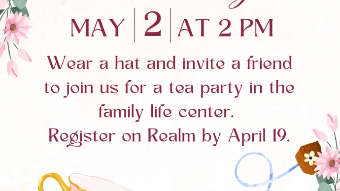 Please join us for a delightful tea party in the family life center. Don’t forget to wear a hat and bring your favorite tea cup. Feel free to bring a friend along, and...