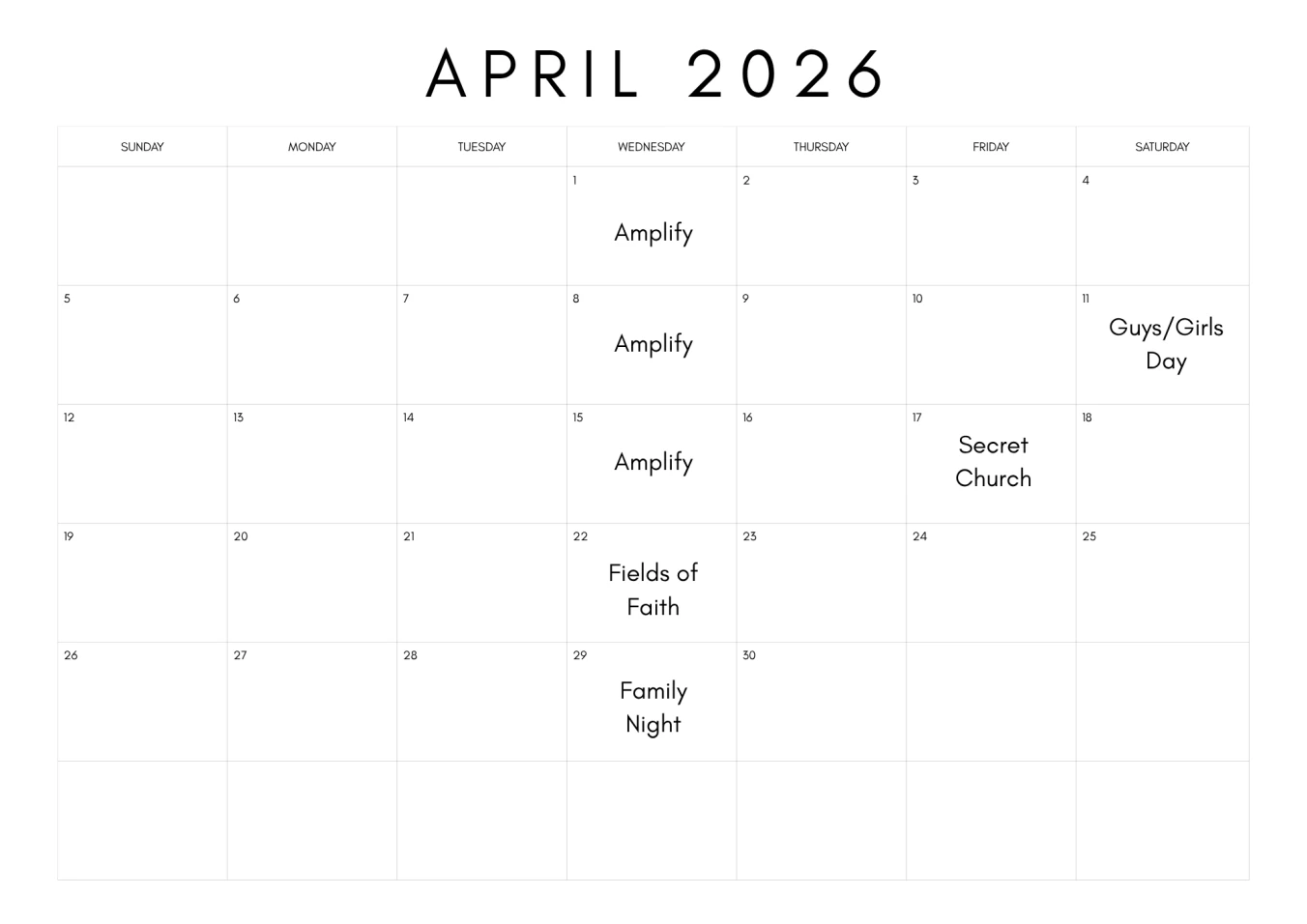 Students Spring Calendar